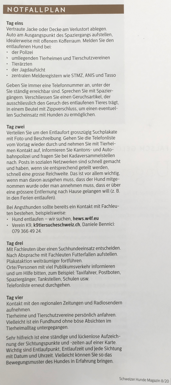 Seit September 2018 verfügen die ZW-Trailers leider über kein einsatzfähiges Trailteam mehr, um verlorene Tiere zu suchen.