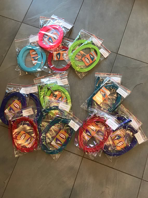 Erhältlich ist eine kleine Auswahl von Biothane-Schleppleinen in verschiedenen Farben: