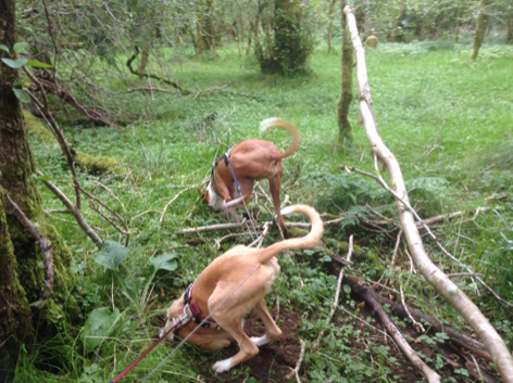 Wir bereiten eine kleine Übung vor. Der Hund wartet im „Sitz“ und beobachtet, wie sein Mensch den gefüllten Futterbeutel in einer Kartonschachtel versteckt. Die Klappen werden nicht ganz geschlossen, sind aber auch nicht offen. Der Hund ist ab und zu etwas unsicher und hat in gewissen Situationen nicht sehr viel Selbstvertrauen. Der Mensch geht zurück zum Hund. Hand fährt in die Tasche und holt ein Leckerli hervor... WARUM? Weil er so schön gewartet hat. IST DAS NÖTIG? Du hast ja soeben eine gemeinsame Übung vorbereitet... – Stimmt...! Zuerst machen wir aber ein paar Koordinationsübungen über ein paar Hindernisse auf dem Platz. Hey, cool, wie die beiden gemeinsam über die Agi-Sprünge springen und über ein Holzbänkchen balancieren! Sie haben zusammen Spass! Dann kommt die Sucheinladung mit Handzeichen in Richtung Kartonschachtel: Bring den Beutel! Der Hund rennt freudig hin, begutachtet die Schachtel, steckt einen kleinen Teil der Nase in die kleine Öffnung. Fragender Blick zum Mensch: Hilfe! Mensch motiviert verbal, probier es doch zuerst selber, wo ist der Beutel? Hund nimmt die Pfoten zu Hilfe, kippt die Schachtel um. Kriecht fast in die Öffnung, traut sich aber noch nicht, den Kopf hineinzustecken. Nochmals fragender Blick zum Menschen: Hilfe, bitte! Mensch kniet sich neben Hund und Schachtel und hält die eine Klappe so weit auf, dass sich der Hund traut, selber den Beutel aus der „bösen“ Schachtel zu retten. Wow, geschafft! Jetzt sind wir aber stolz! Und drehen ein paar ausgelassene Runden mit dem Beutel im Fang, lassen ihn in die Luft fliegen, fangen ihn wieder, schütteln ihn „tot“ und geniessen unseren Triumph! Anschliessend bringt der Hund den Beutel zu seinem Menschen, der ihn öffnet und ihm das Futter darin anbietet. Vielleicht ist auch eine Karkasse drin oder ein besonders guter Kauknochen. Es ist ganz sicher kein Leckerli drin, wozu auch?